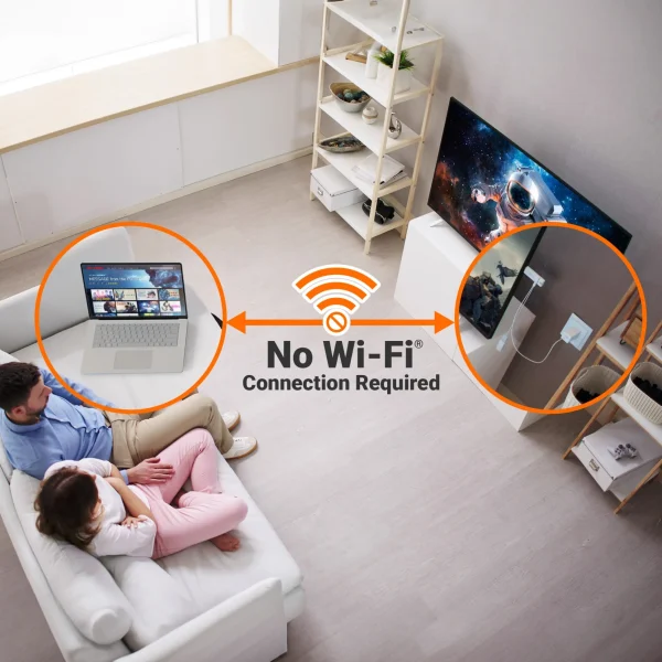 Samo priključite adapter, uključite napajanje i povežite se sa ScreenCast 4K (udaljenost bežičnog prijenosa do 50 ft./15 m u otvorenom okruženju) za početak emitiranja.